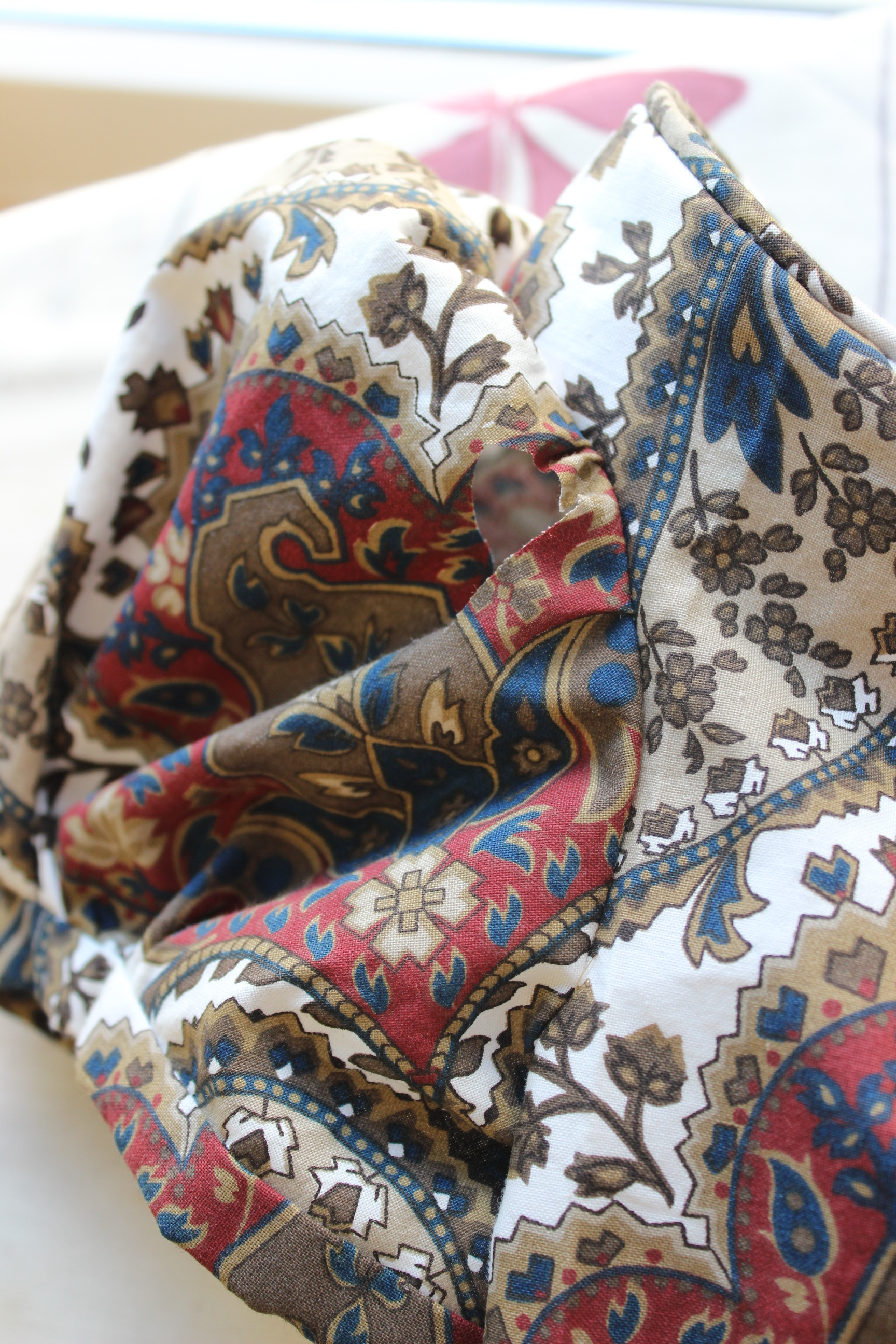 Fabric: 1 white cotton sheet (IKEA) and 1, 5 paisley cotton bedsheet (IKEA).