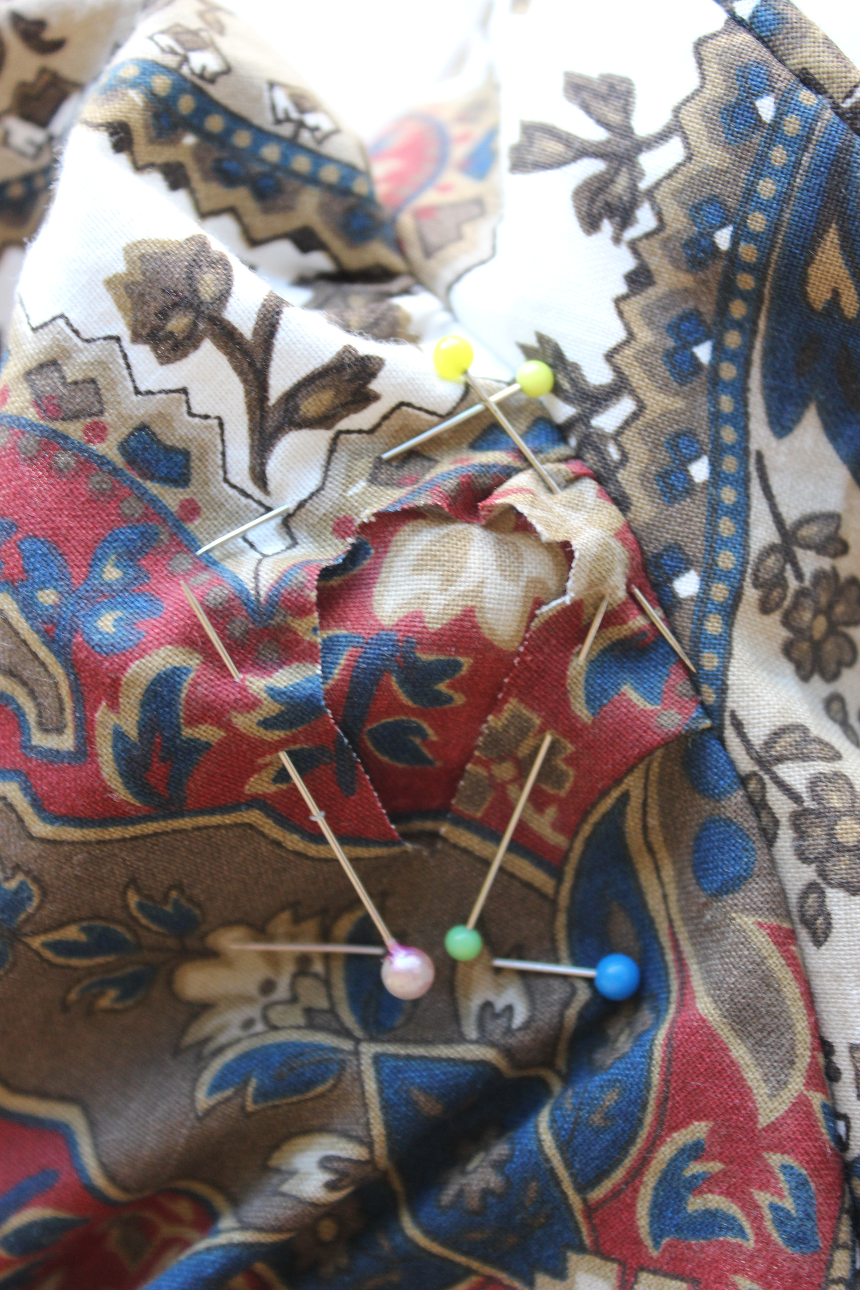 After basting the interlinig to the paisley, I sewed the pieces together and tried it on.