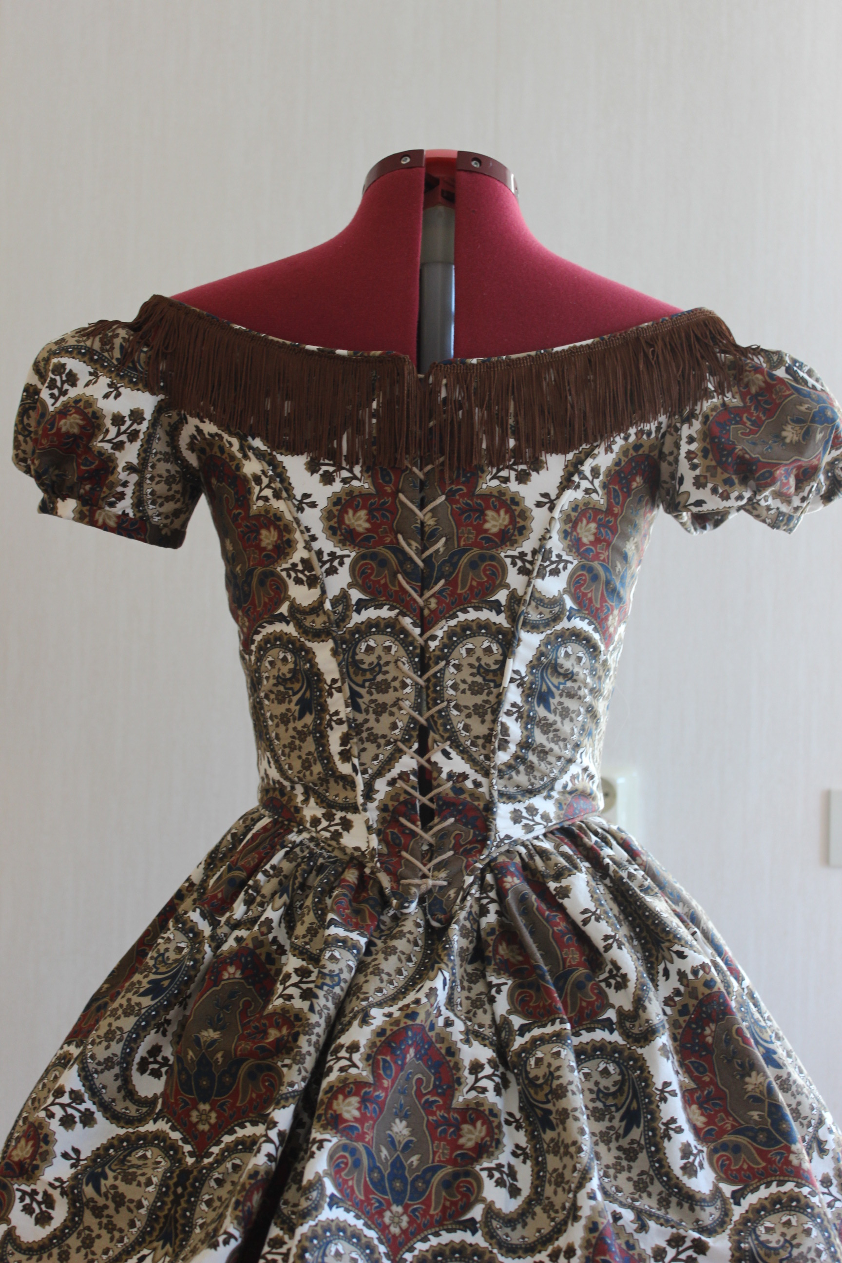 How historical accurate: I don’t know – I made it to look the part. But it is made using modern techniques and material. Even though a cotton evening bodice was probably what the les whealty women wore, I’m not sure she would have chosen such a loud print.