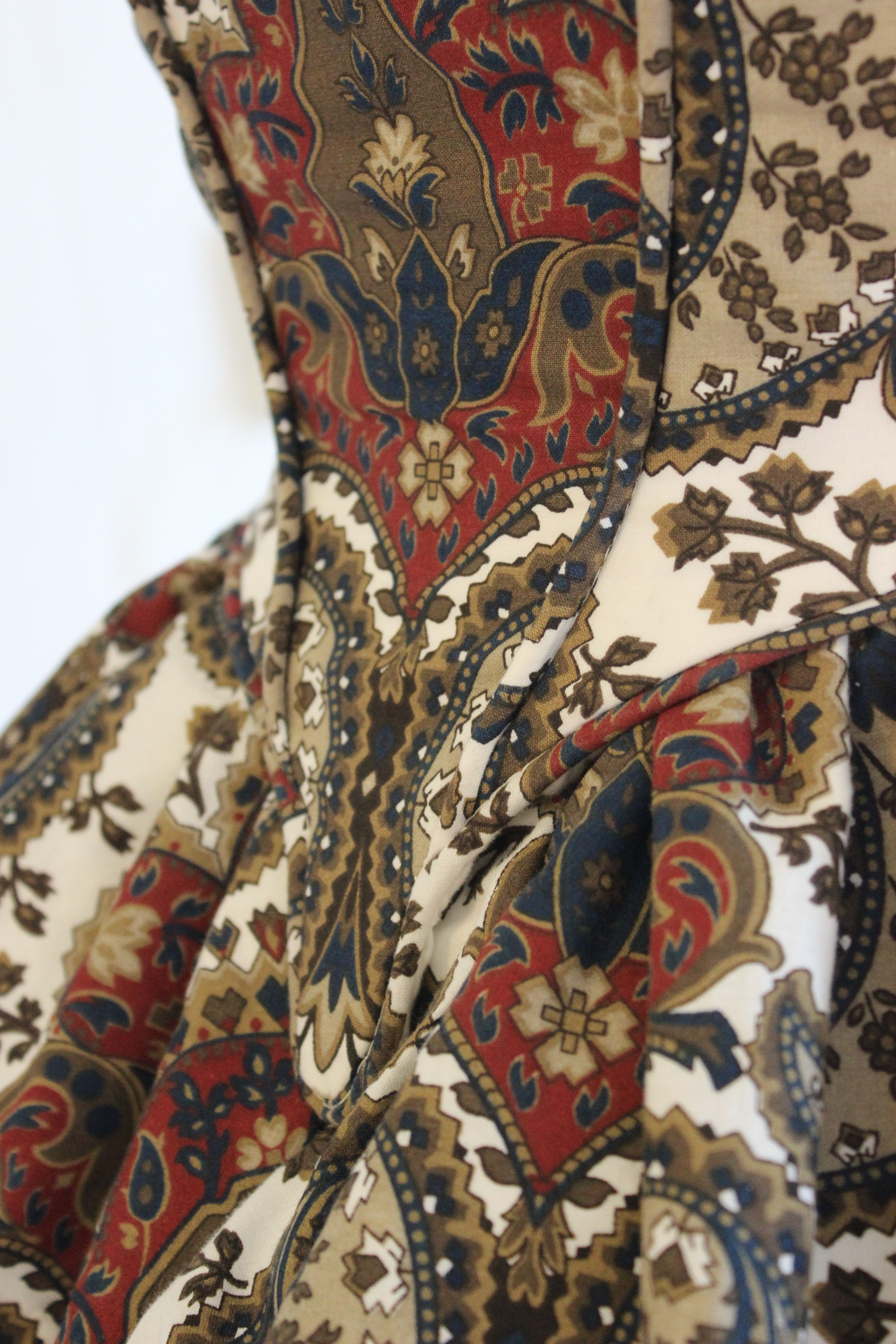 How Historical accurate: So so. I think it does look the part but I’m not sure about the messy pattern. Cotton is legit and paisley was a popular pattern during this time, but I doubt that the dressmaker using cotton in her daydress would have had a sewingmachine.