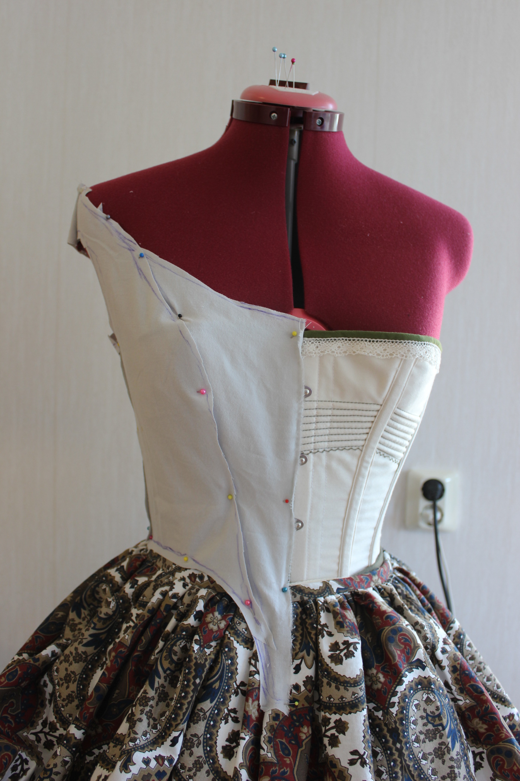 While working on the Paisley skirt I had trouble deciding what kind of bodice I would make to go with it, a daytime or a evening bodice. And with a long vacation from work ahead of me, I thought “why not make both?” And so I did.