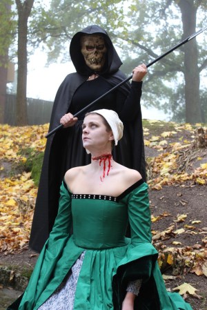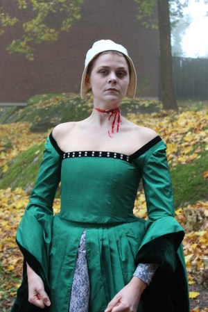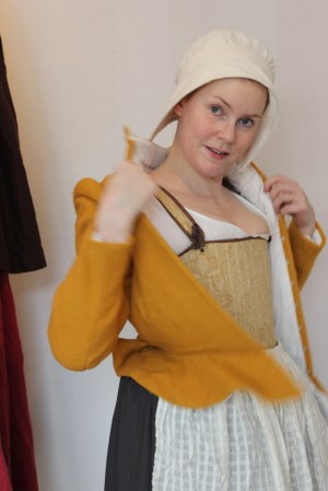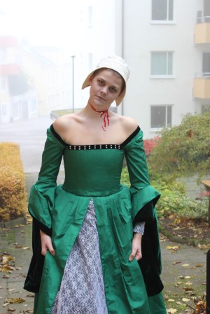 **I’m sorry about the “Floating ruff”, but the partlet was simply to hot to wear, and I’ve forgotten to bring my necklace and/or black-worked smock, so I figured it was better then nothing… :-/