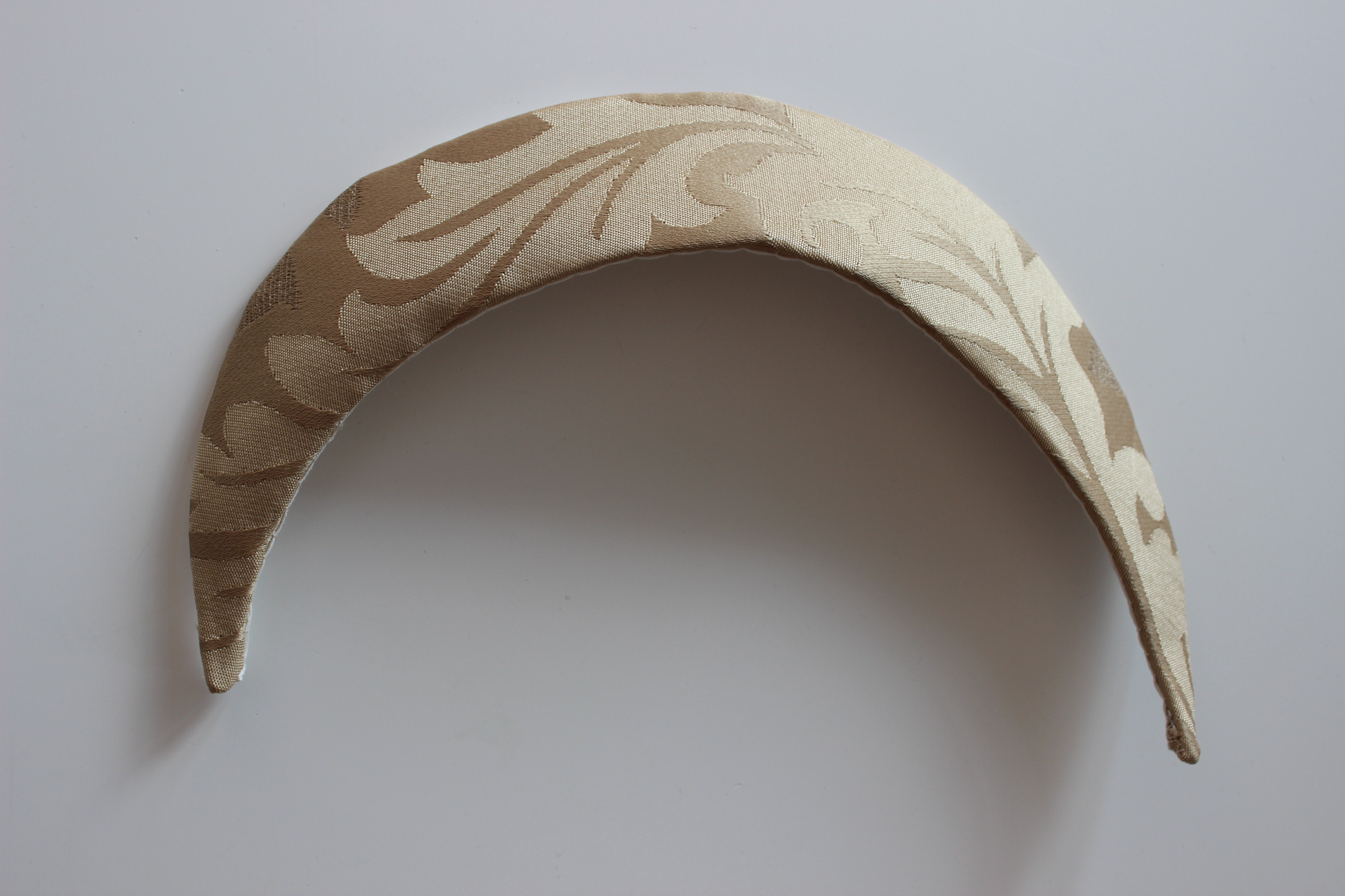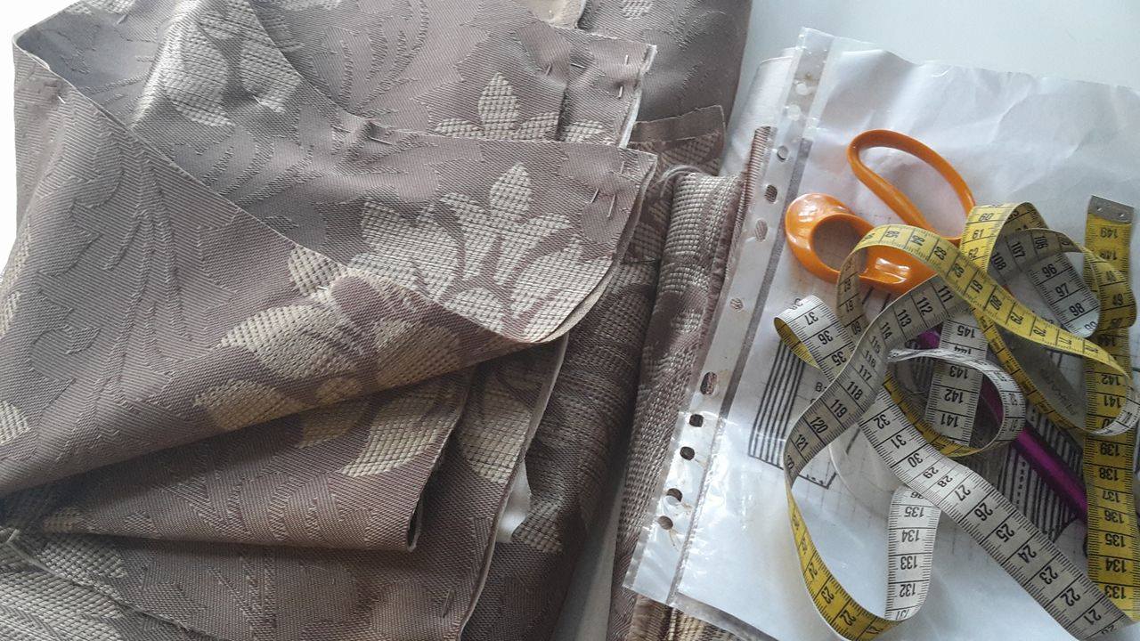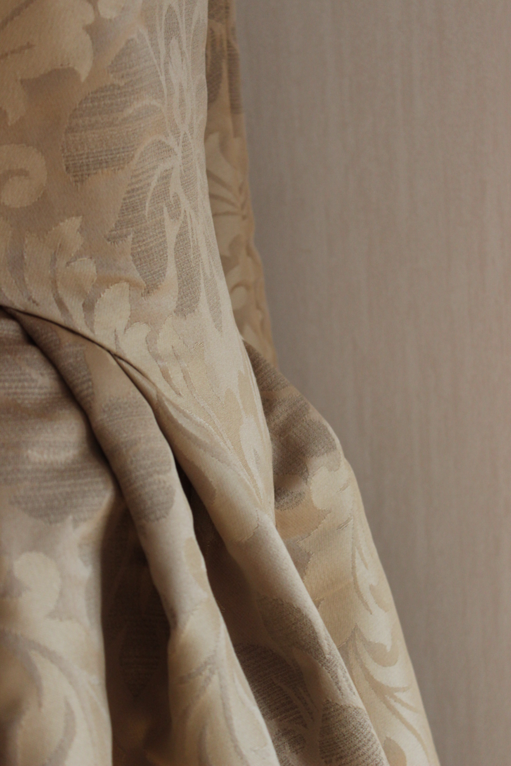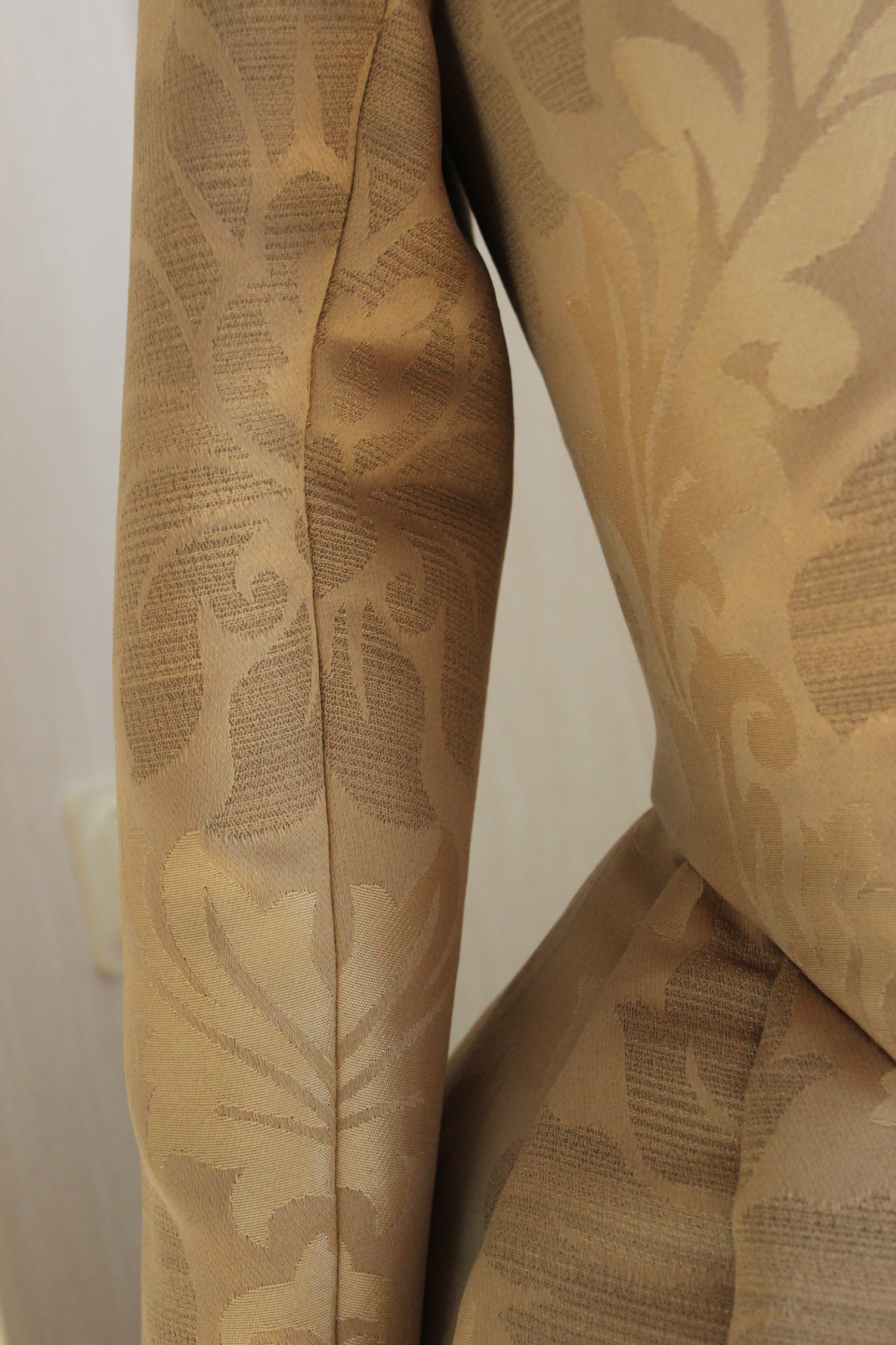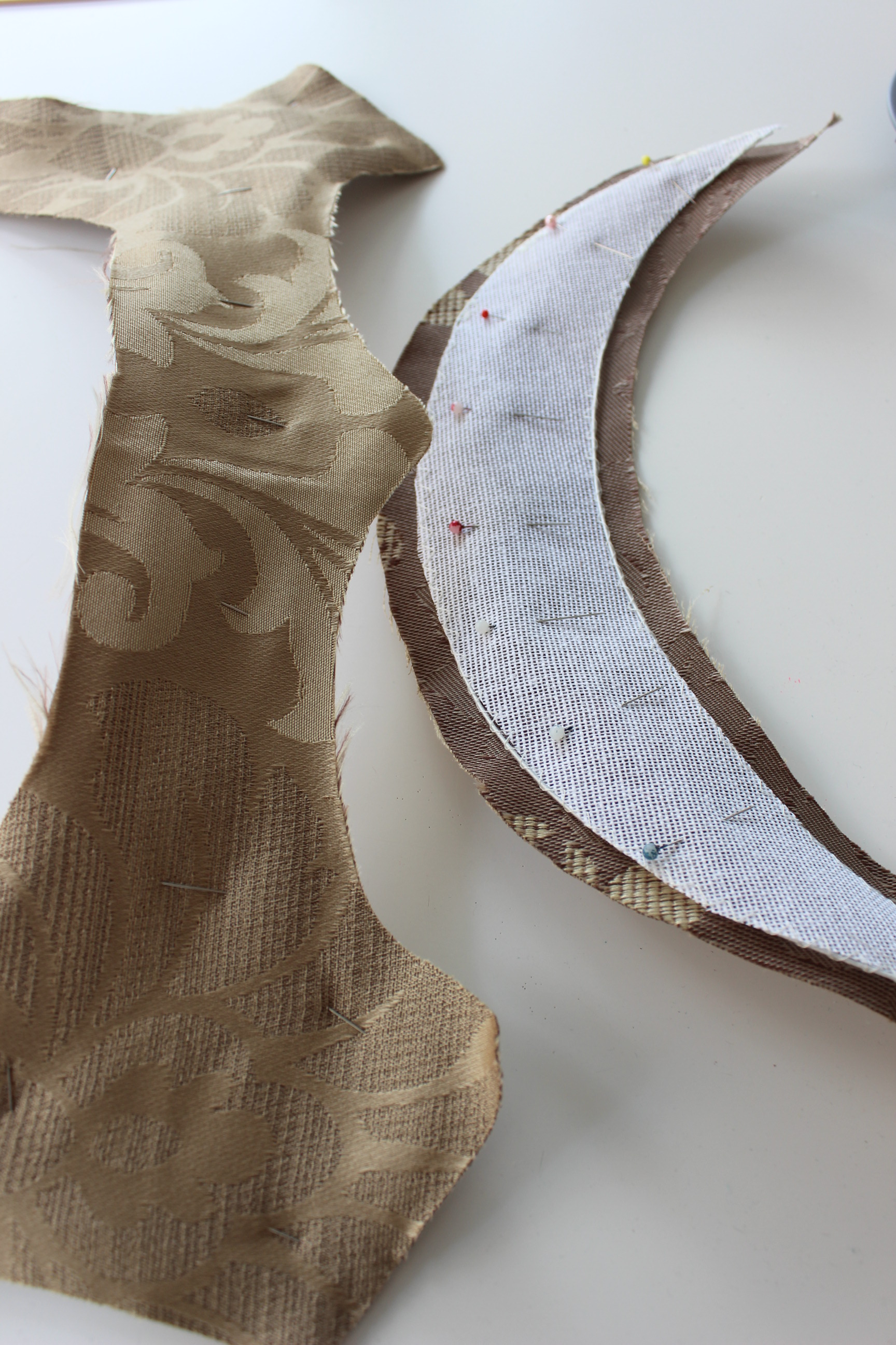 Fabric: 4,5 m of golden polyester furniture brocade/damast, 1 m white cotton for lining and interning the bodice.