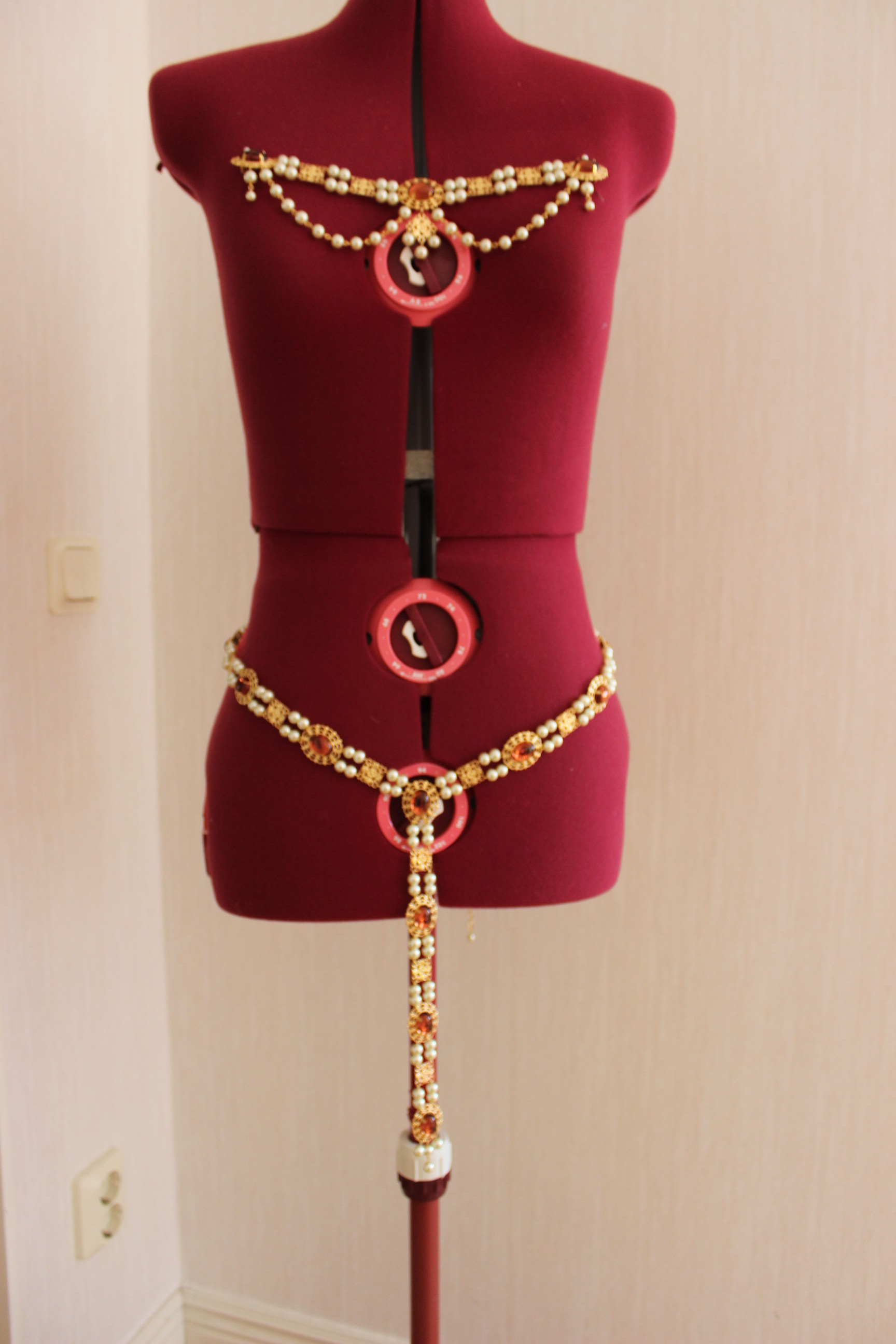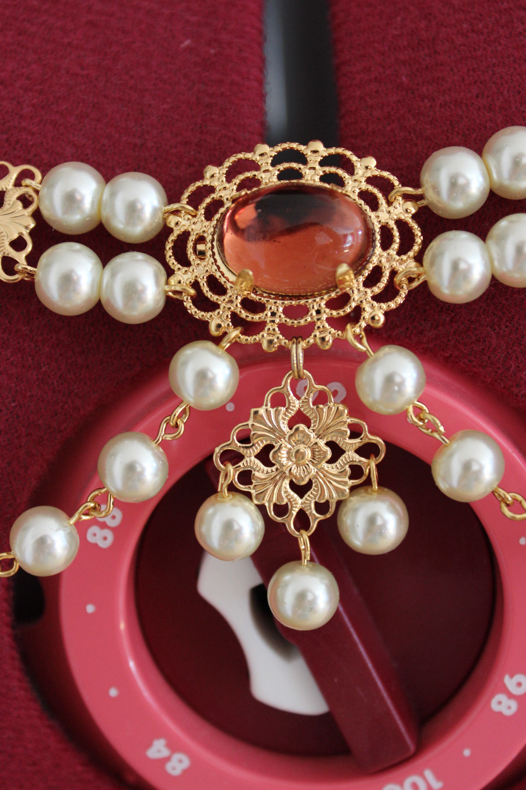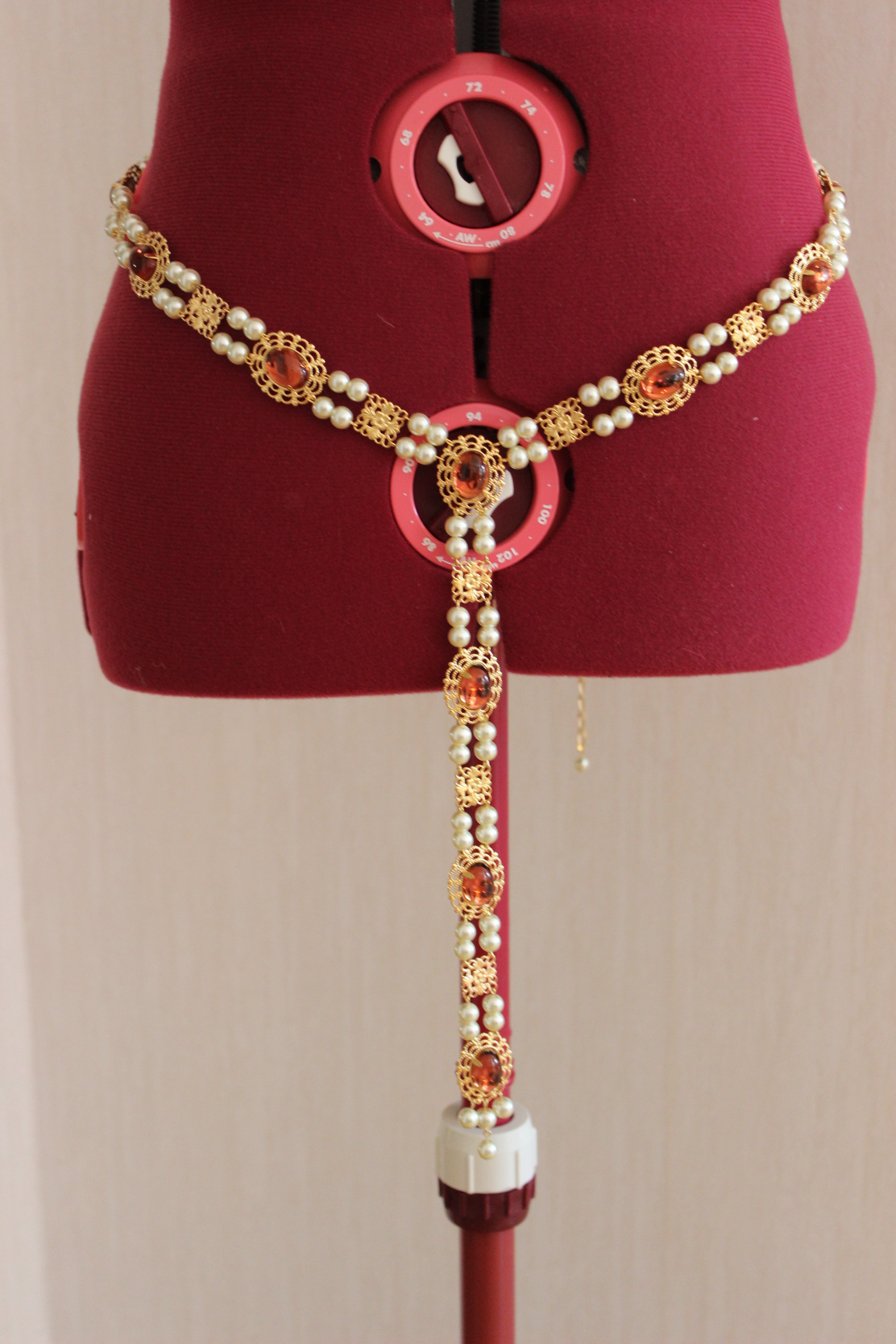 img_0727It have a chain in back for size adjustments which is really smart. My only wish is for the hanging front piece to be a little bit longer, like you see in portraits of the time, but I get that that would give it another price.