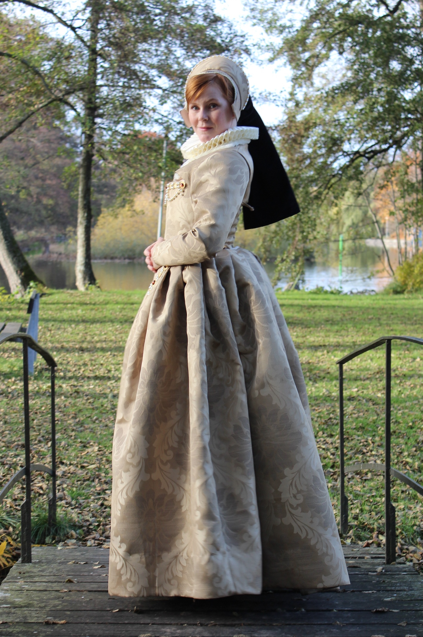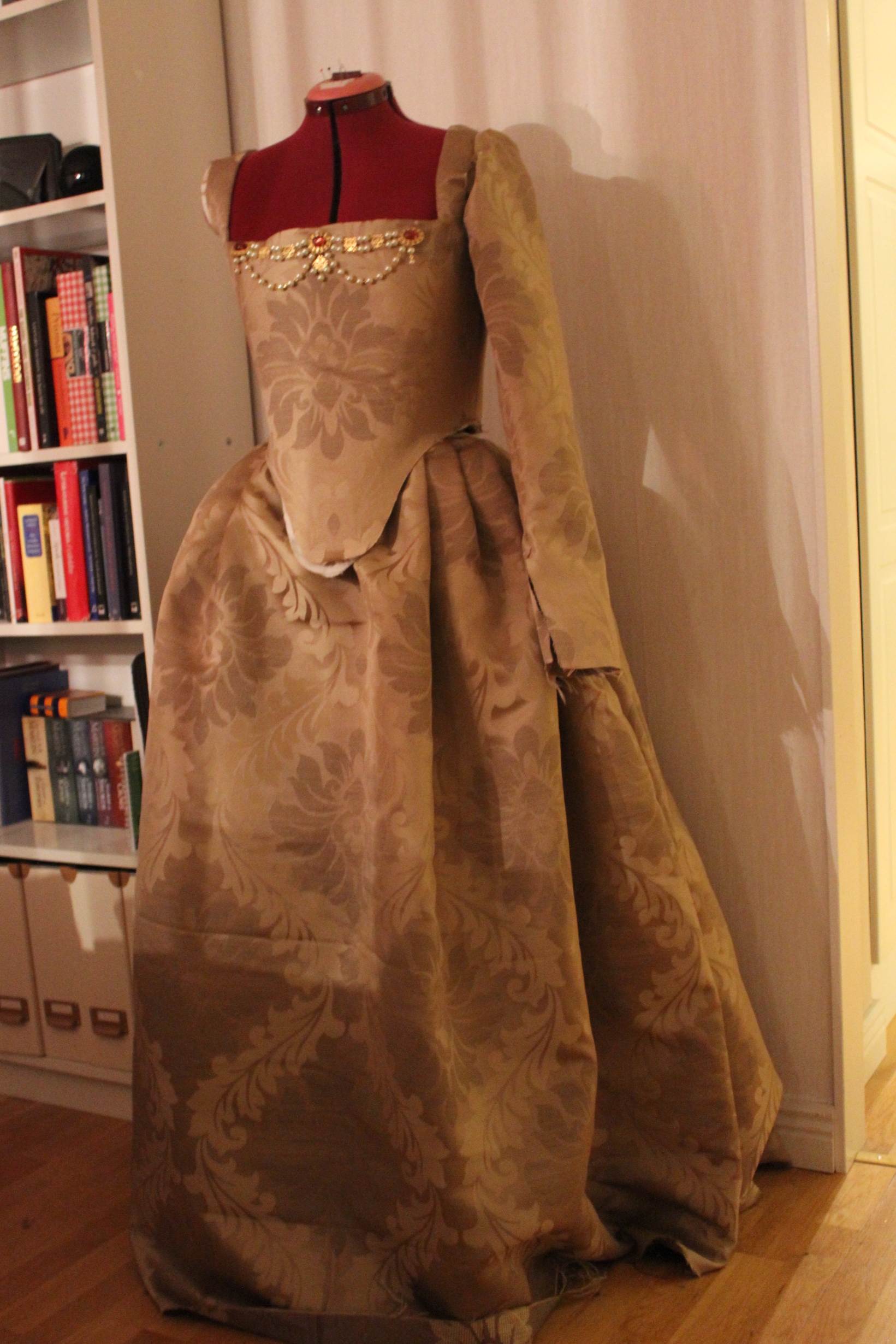 Pattern: Bodice pattern remade from “The Dorothea bodice” from “The Tudor Tailor”, the sleeves was copied from my previous mentor at the theater atelje, the skirt is basically just 3 pieces of fabric sewn together.