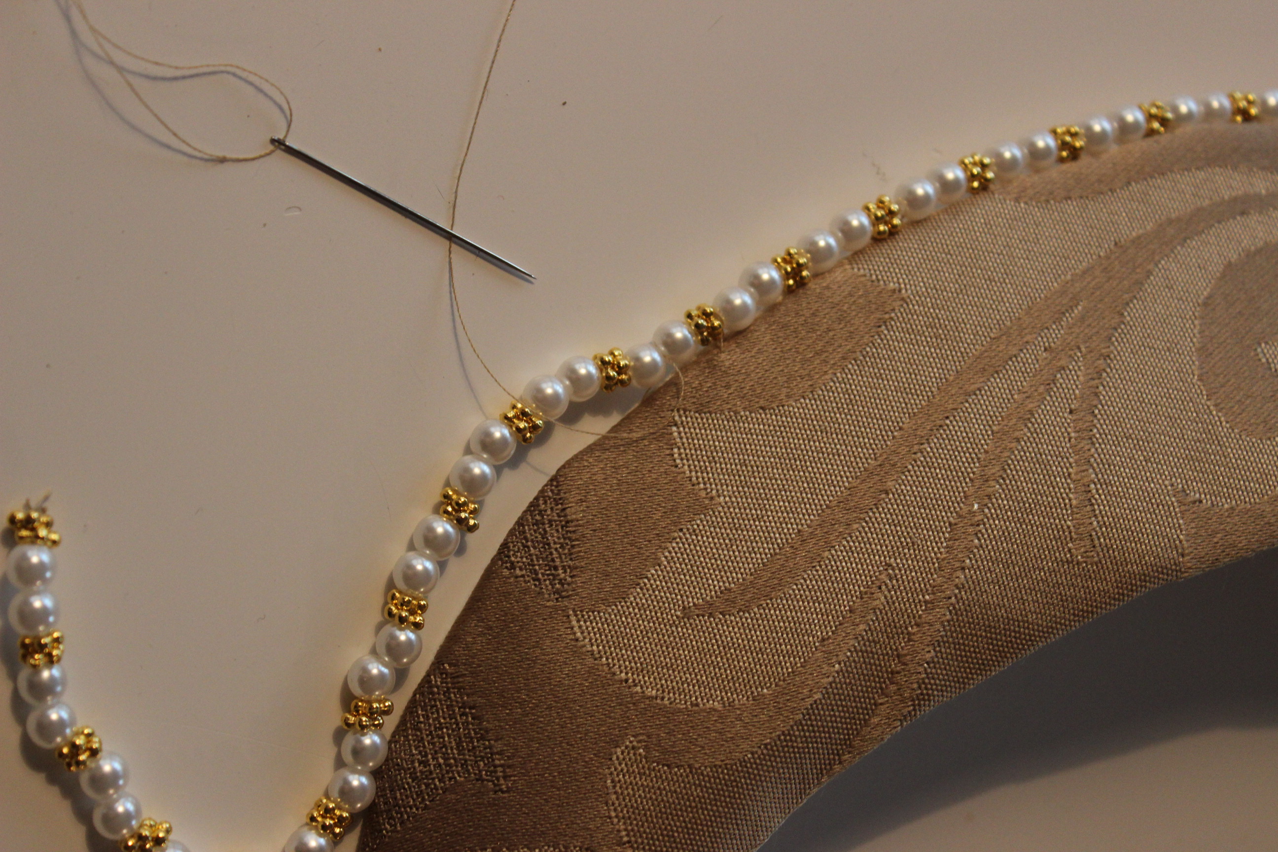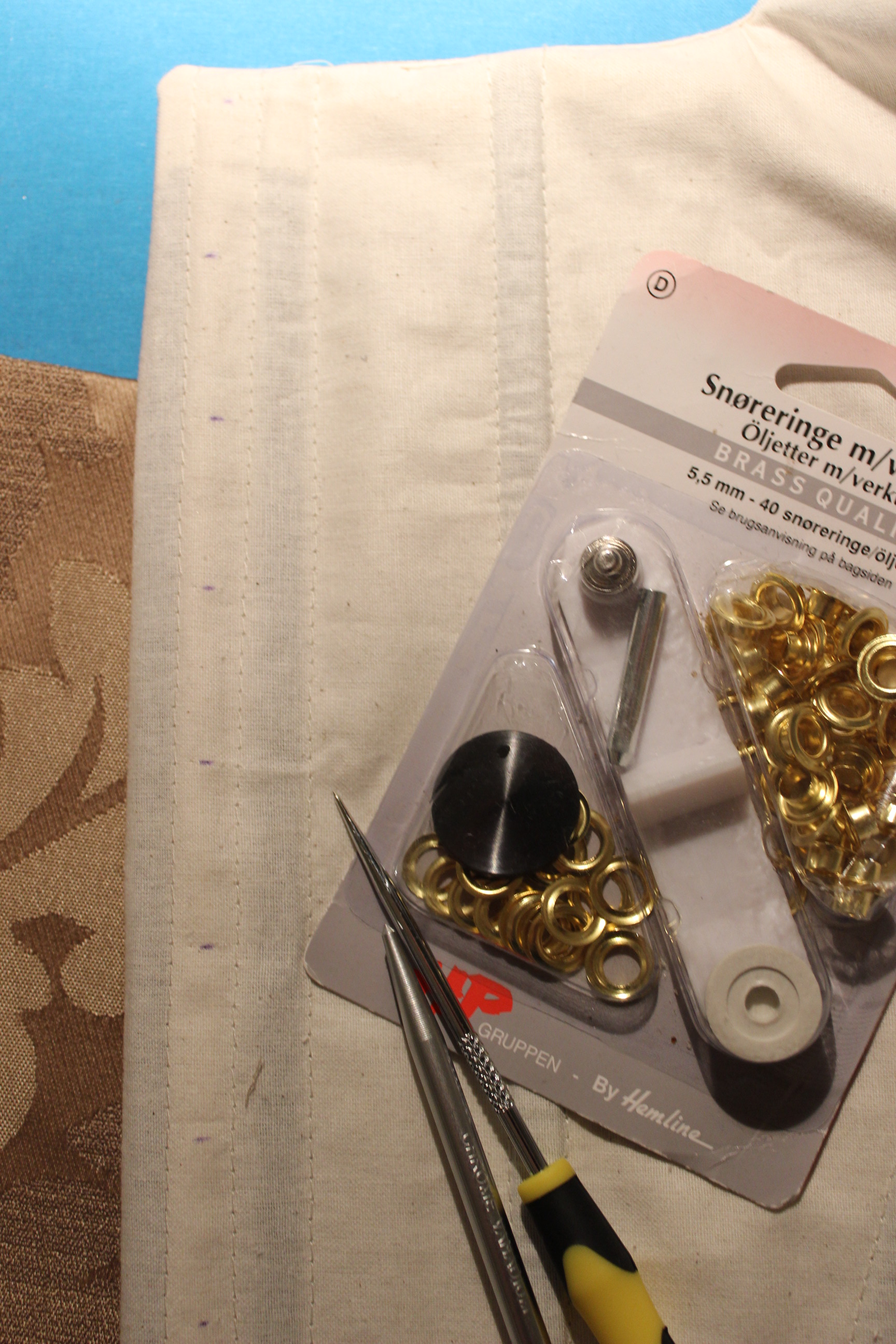 I continued by adding lacing grommets to the back. img_1054I choose the golden ones to match the fabric.