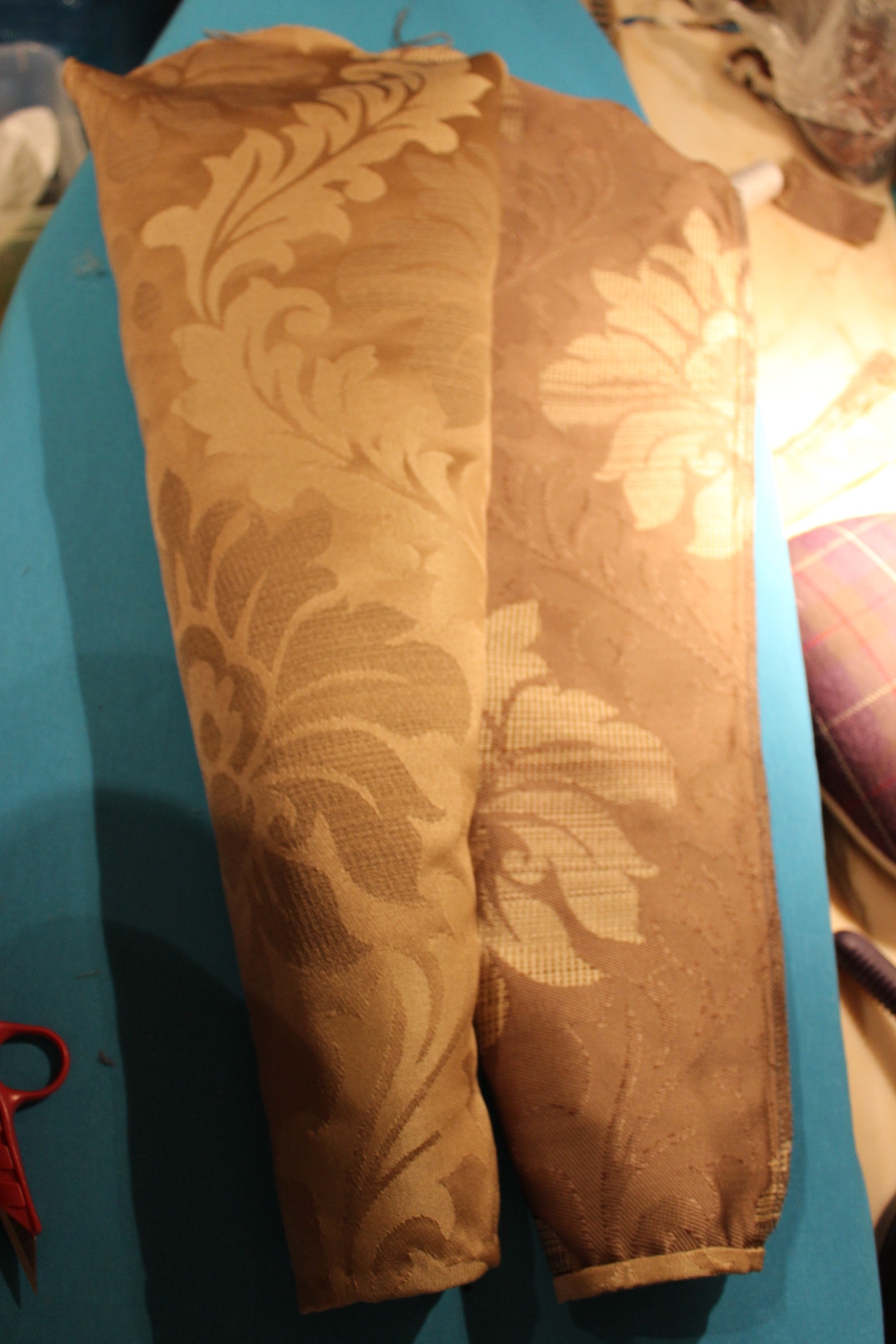 After some experimenting with cover buttons I decided to skip the detail of placate and buttons on the sleeves and just stitched them together as they where.img_1057The sleeves stitched and ready (one is turned inside out).