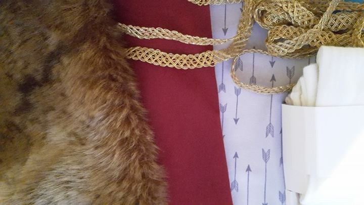 Then I hit the fabric store in search for some suitable fabrics.15451386_10211259297419846_1297395615_nLeft to right: Brown fake fur (stash), burgundy/red singel Jersey, grey/silver printed Jersey, white knitted leggings and golden trim.