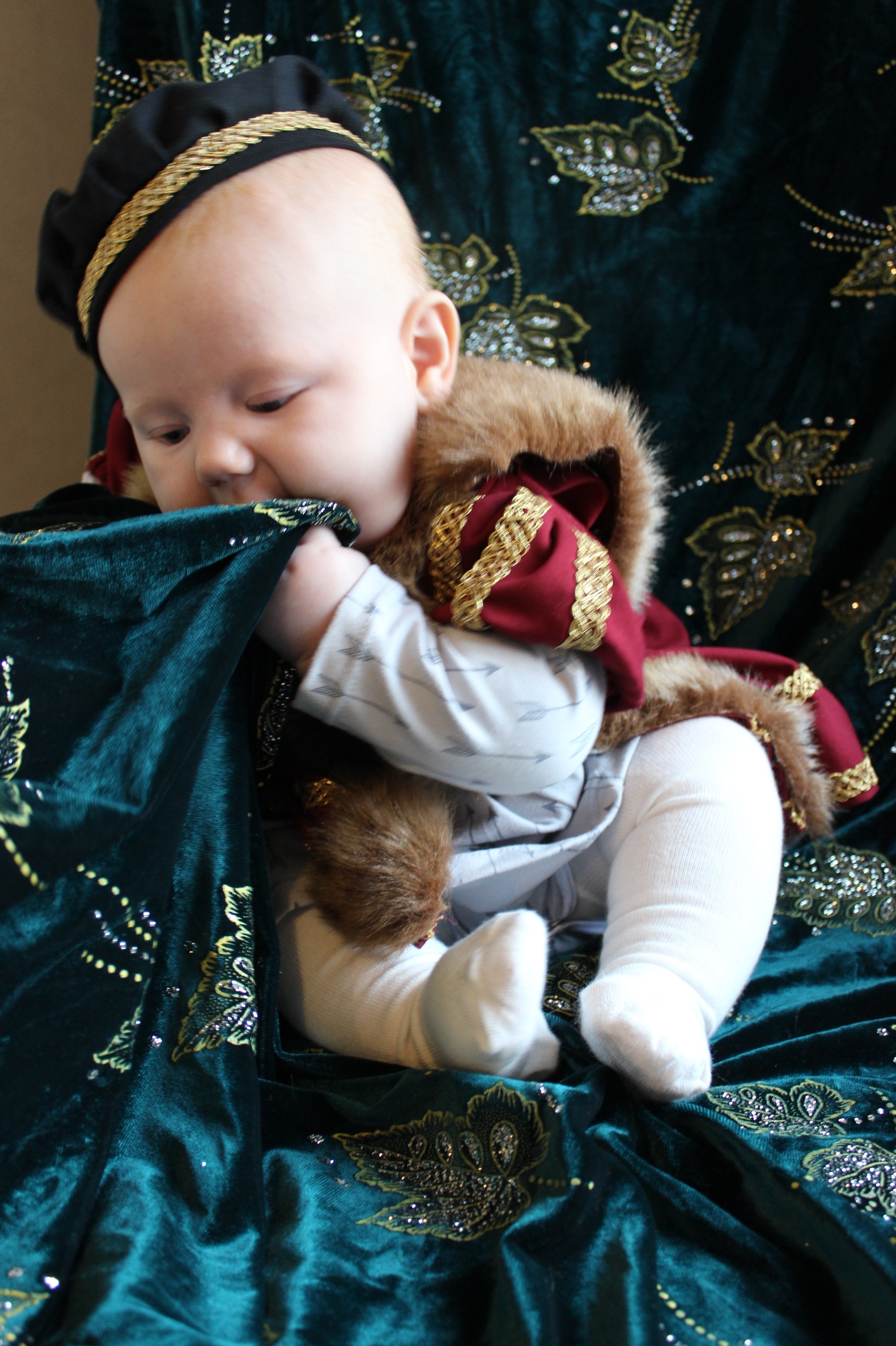 And baby Charlie wore the Henry VIII coat from last year, pared with an old red velvet hat to match.