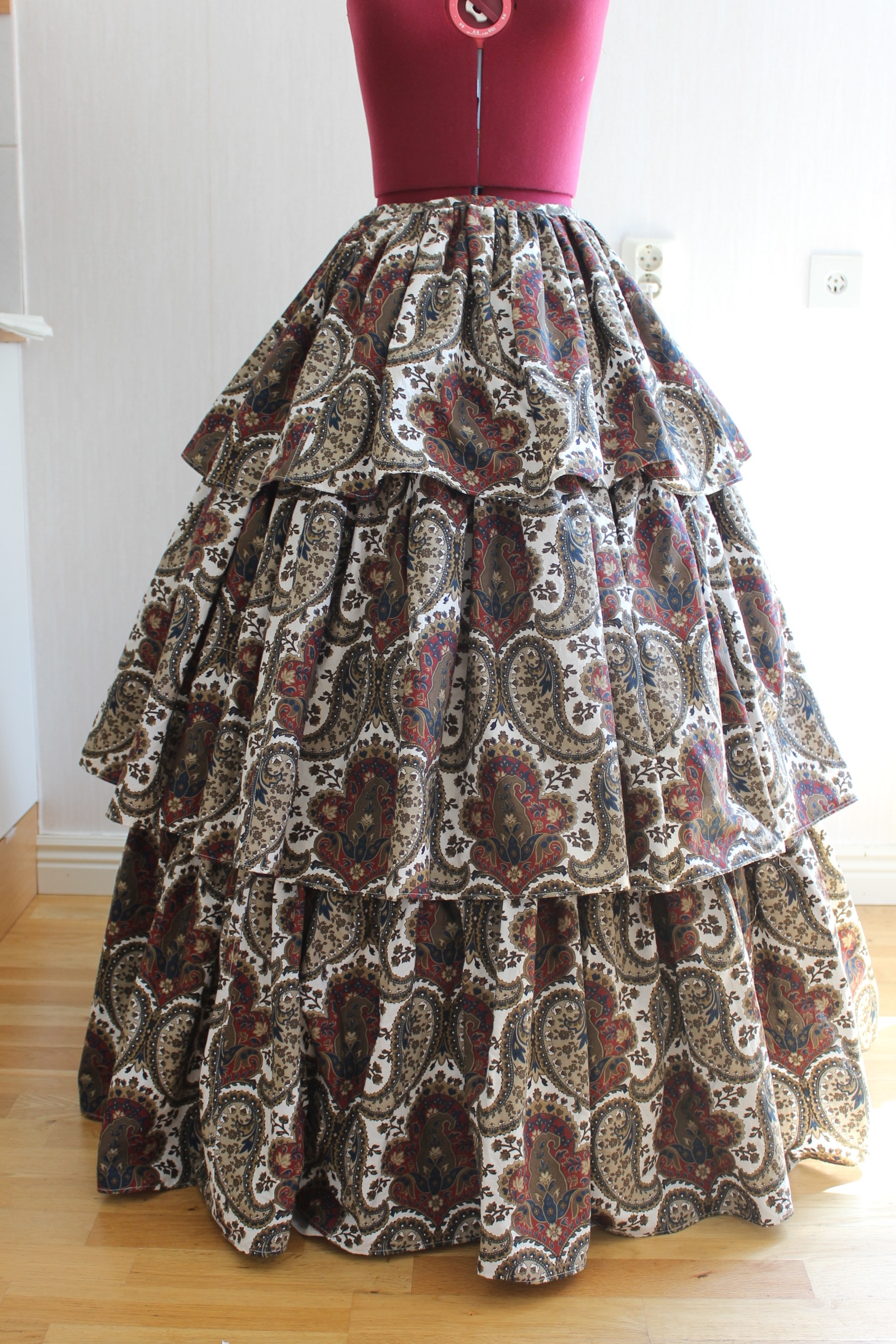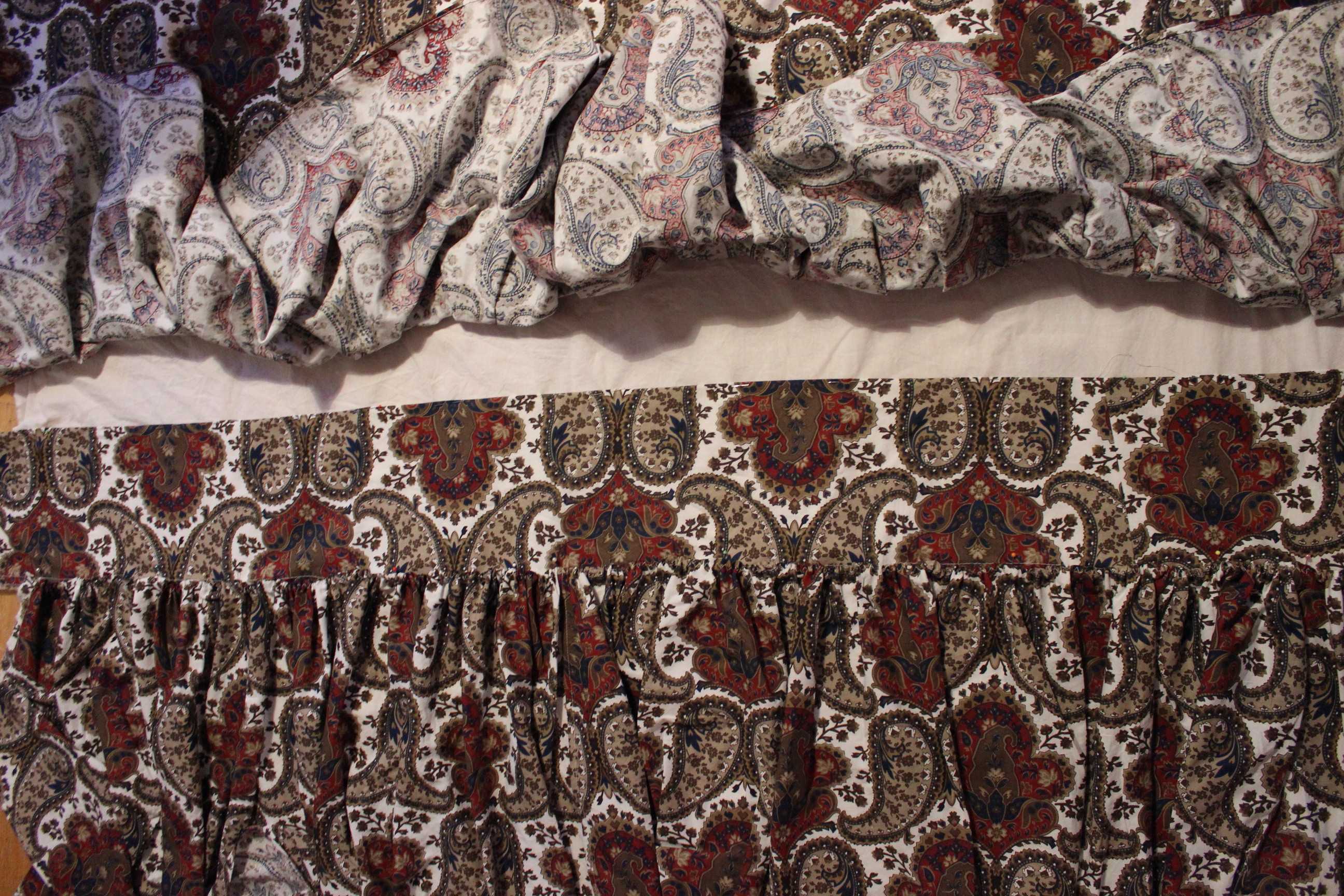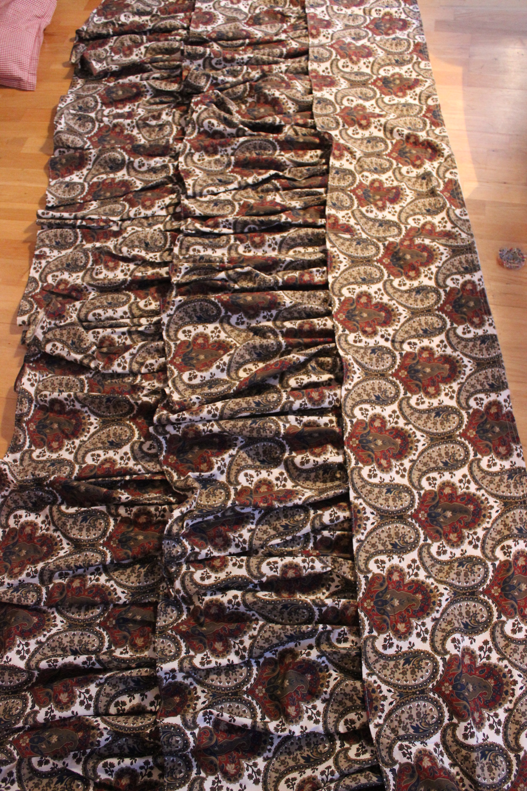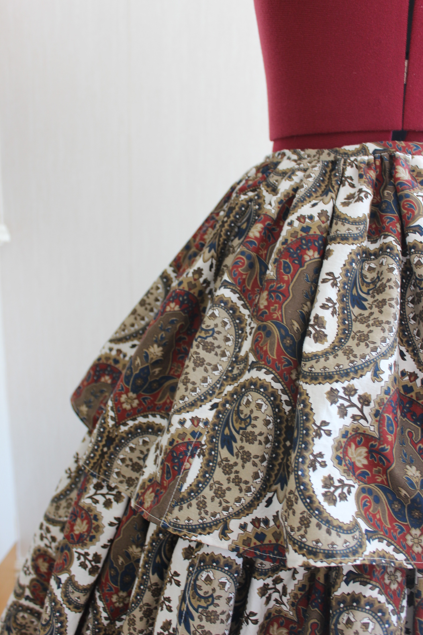 Final thoughts: I had some trouble deciding on the bottom flounce.The original calles for fringes, but there was no way I was going to get hold on some cheap and sutable ones in time. I did try to make my own, but they lacked the weight neccesary to hang nicely. In the end I opted for a narrow flounce, and I’m pretty happy with the result.