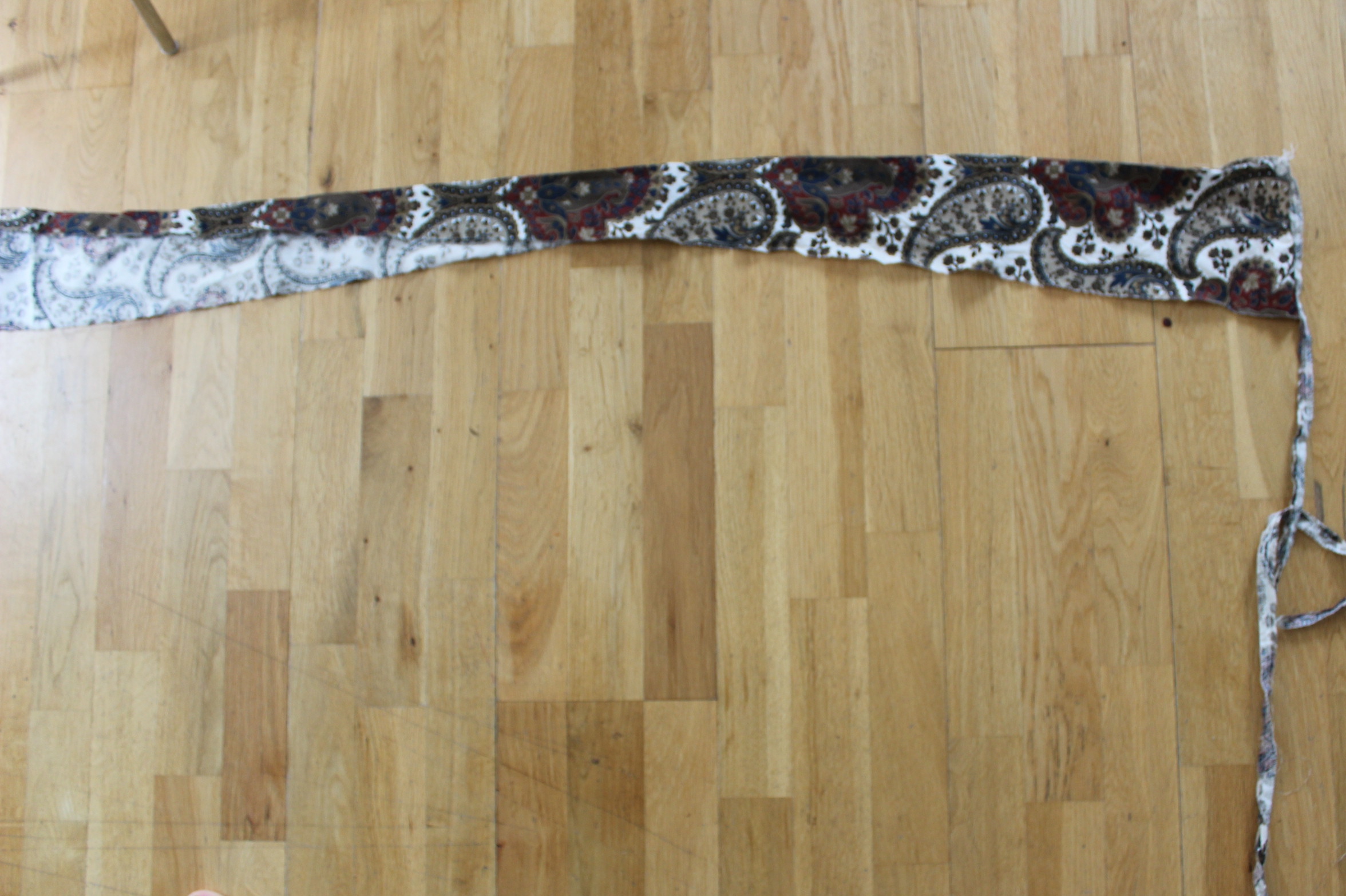 I wanted to make one large enough to wrap around the body and tie in the back, like you se in many paintings from the 1780s.