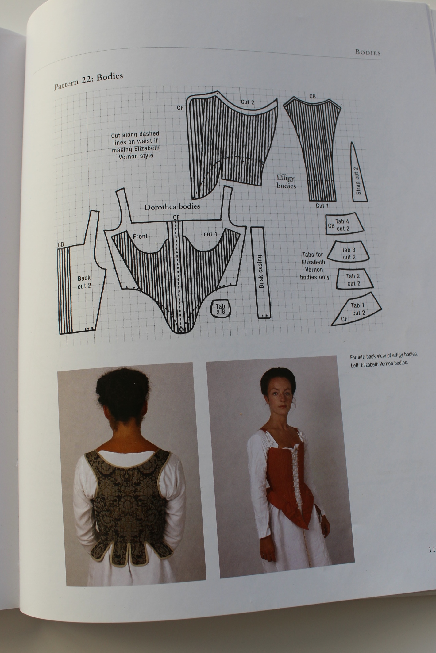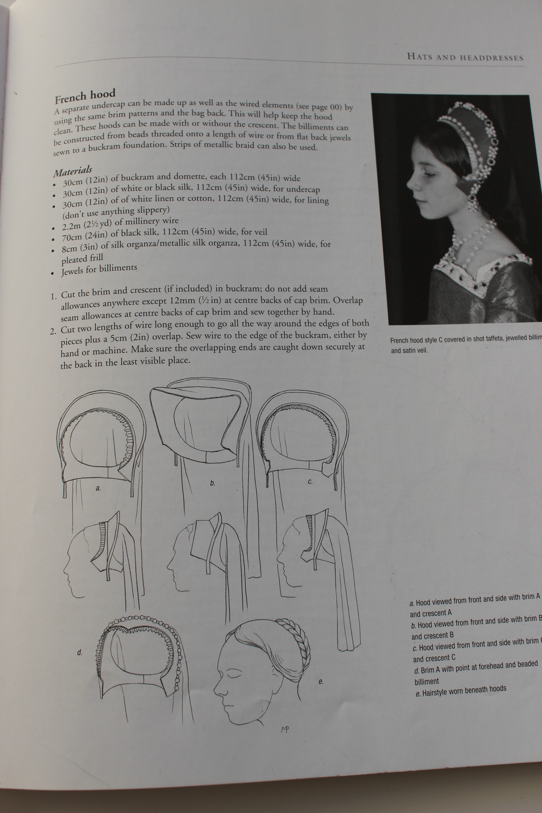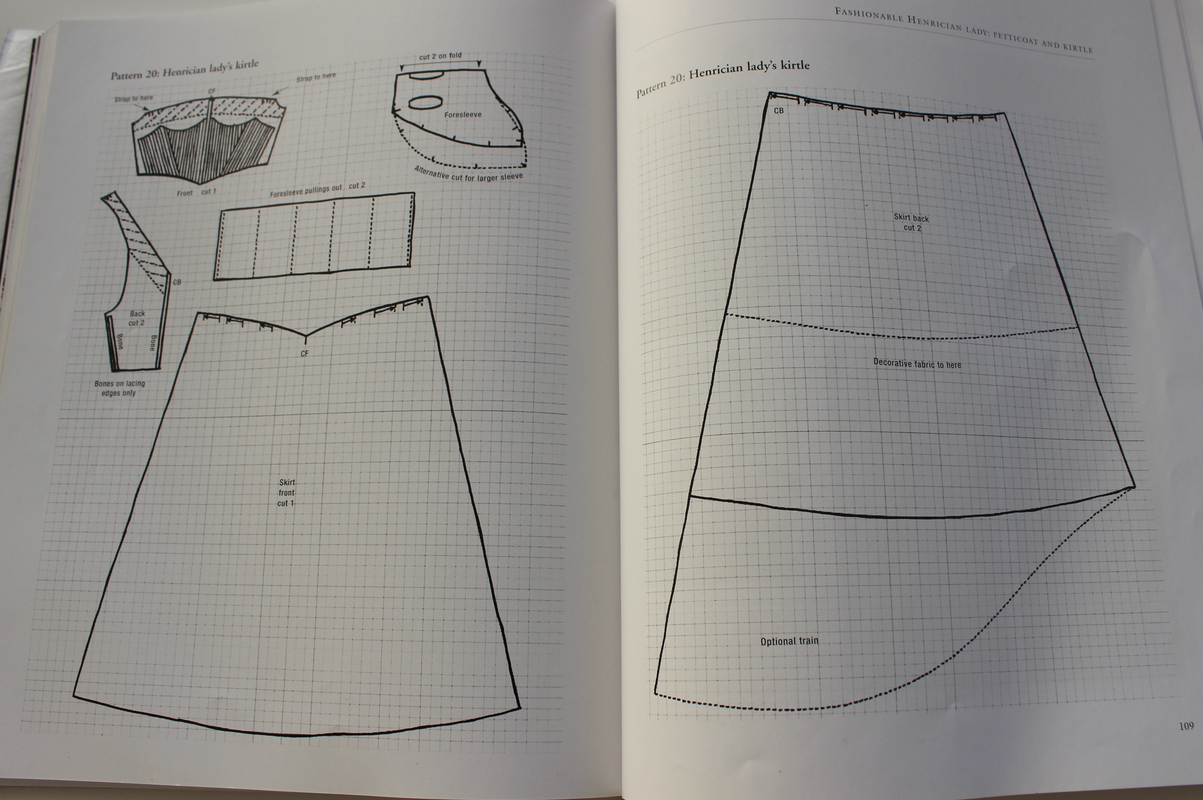 I started by taking a close look at the inspiration/reference pic, and flipping through the pages of “The Tudor Tailor” I found what I needed.