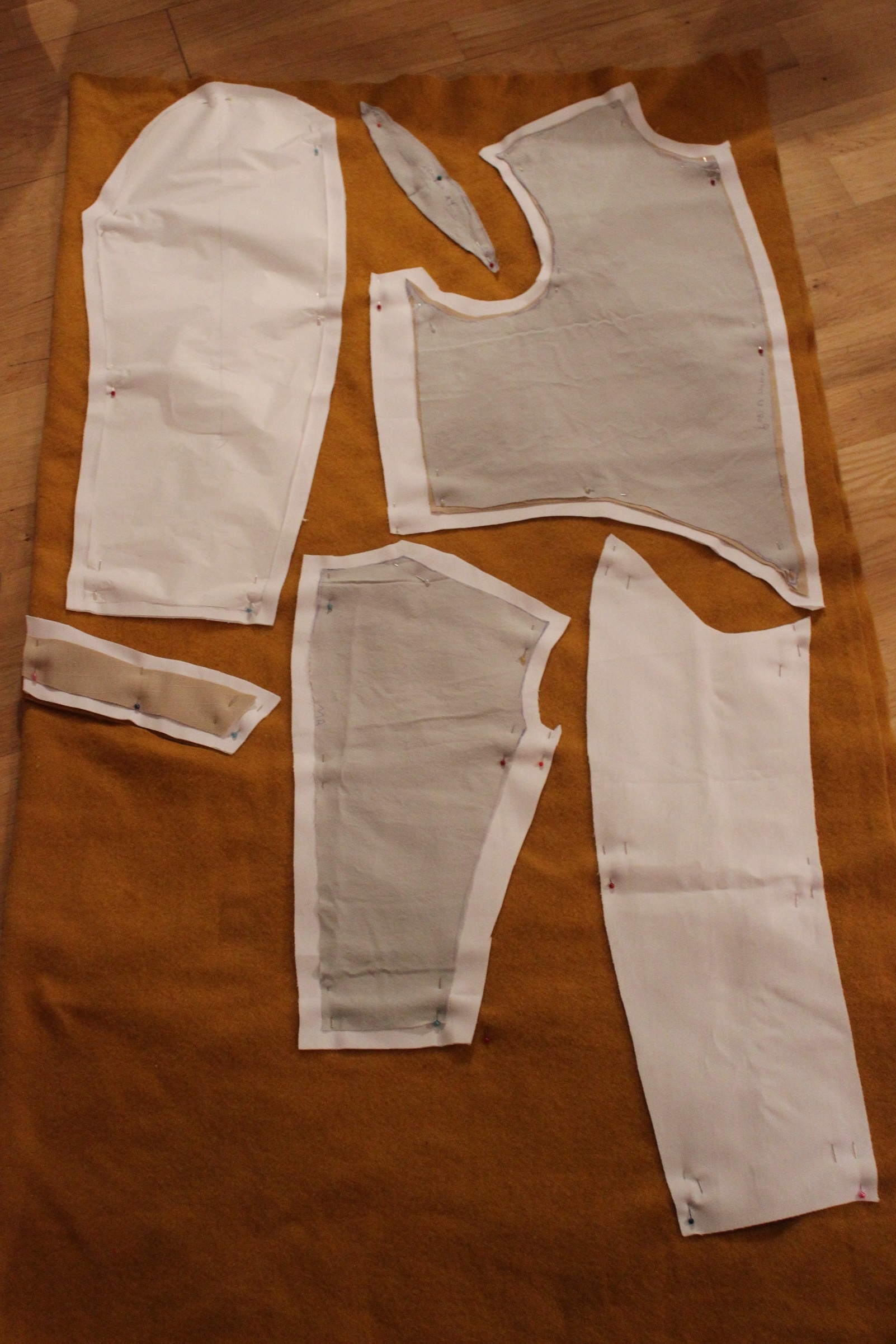 Then I started on the interlining for the bodice front.IMG_2430Using white cotton twill, and heavy linen to give it shape.