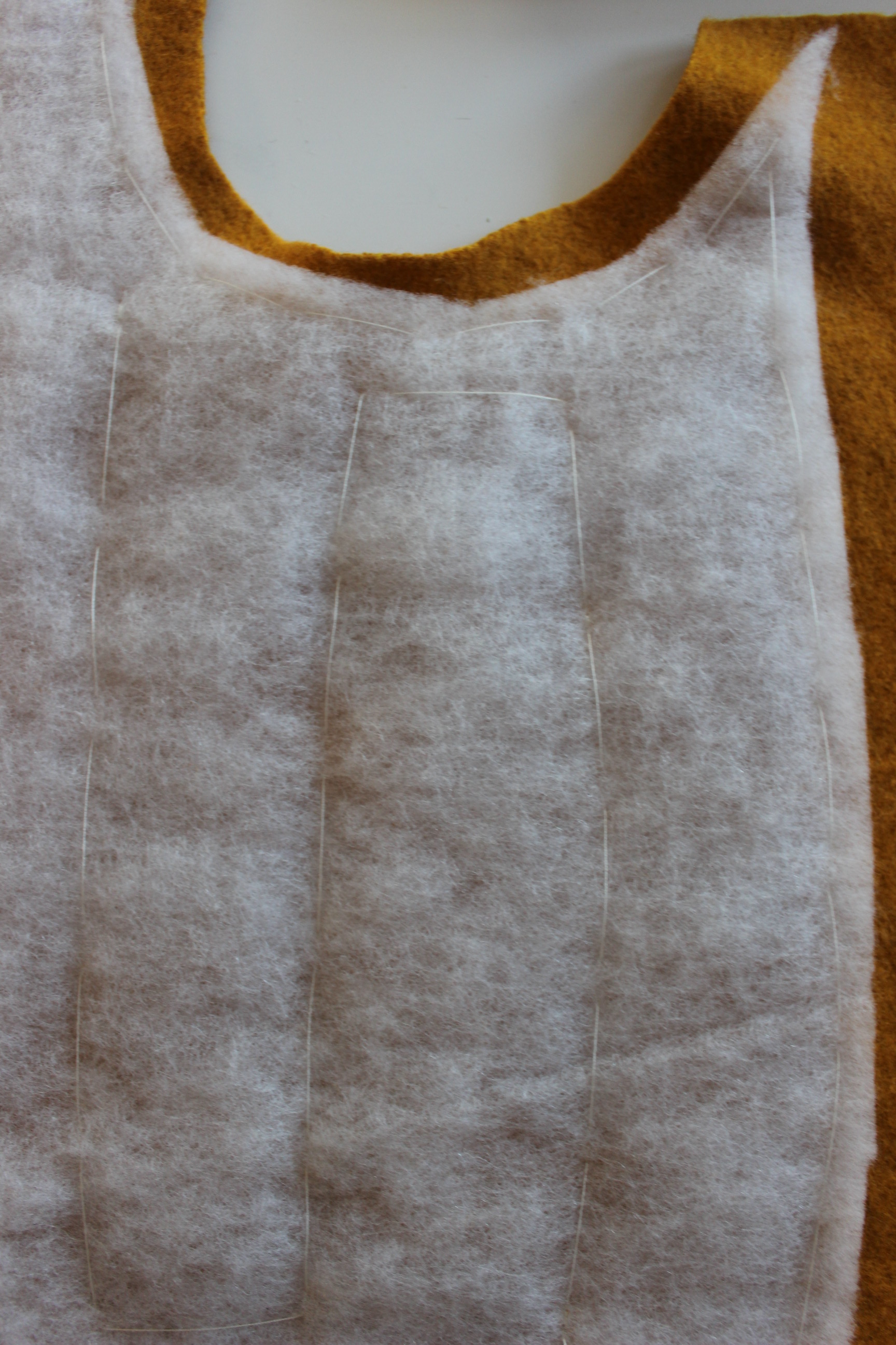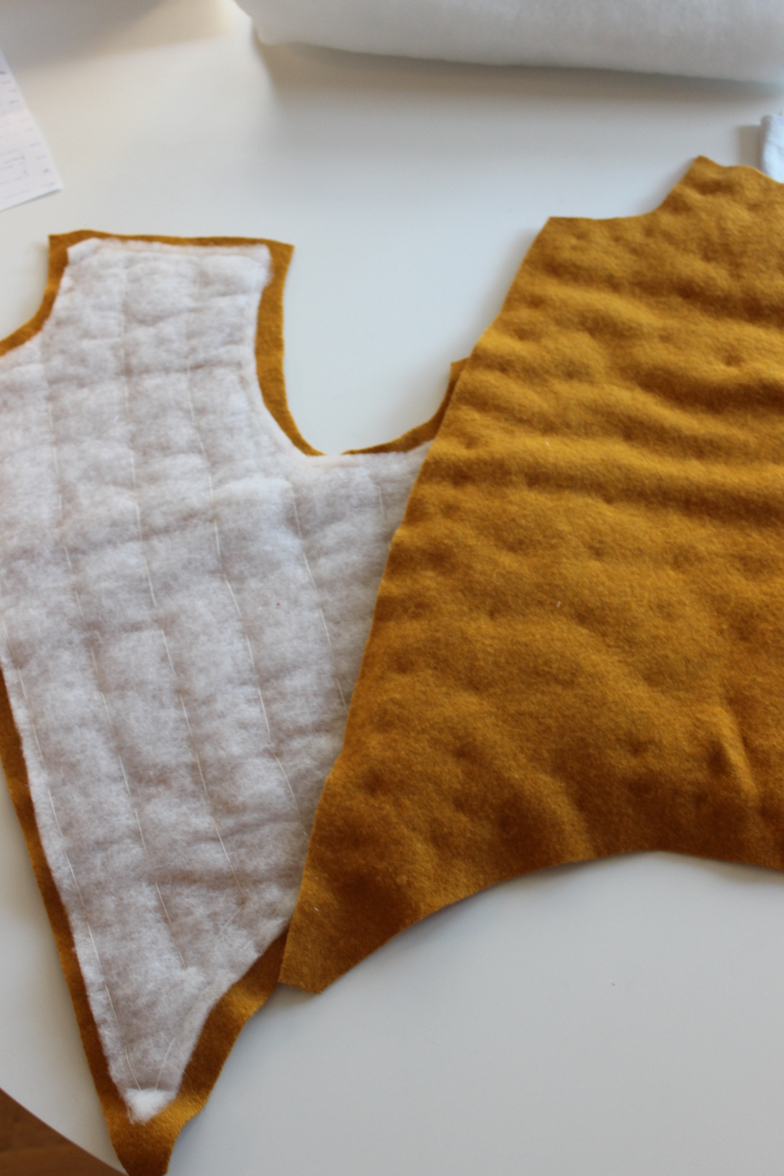 Then I cut and pad stitched wadding to the front pieces.IMG_2426Unfortanly the minimal stitches shows through as small dots on the outside.IMG_2428Close-up of the stitches.